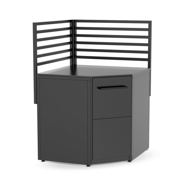Használd ki a rendelkezésre álló hely minden centiméterét a Cozze Elements kültéri konyha sarokmodullal, amely tökéletes megoldás a kihasználatlan sarkok stílusos és praktikus tárolóvá alakítására. Akár álmaid BBQ‑zónáját építed, akár csak több munkafelületre van szükséged, ez a sarokelem harmonikusan összeköti a konyhaelemeket, egyszerűen és elegánsan. Az állítható lábak gondoskodnak a stabil, vízszintes elhelyezésről bármilyen felületen, így ideális kiegészítője bármely kültéri konyhának.