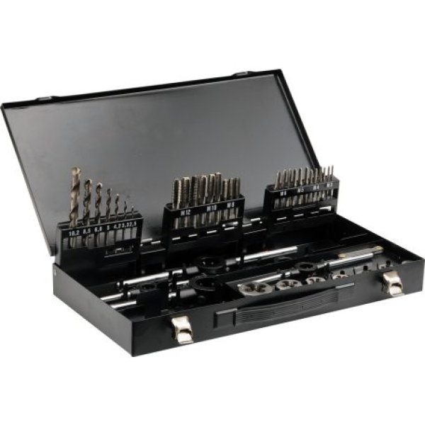 44 részes menetmetsző és menetfúró készlet metrikus menetek készítéséhez M3-M12 méret között