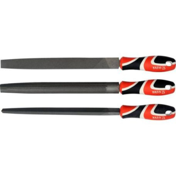 Kiváló minőségű három részes reszelő készlet (lapos, háromszög, félkör), professzionális használatra, fémek és műanyagok hatékony, közepesen durva és alap felületkezeléséhez.