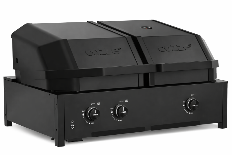 A COZZE Quattro 900 egy prémium kategóriás, nagyteljesítményű 4 az 1‑ben grill, amelyet azoknak terveztek, akik a lehető legtöbbet szeretnék kihozni kültéri főzésükből. A készülék négy különálló főzőzónát kínál: steak állomást, klasszikus grillt, pizzakemencét és plancha felületet, így egyetlen berendezéssel bármilyen fogás elkészíthető — a tökéletesen sült steaktől a ropogós pizzáig.