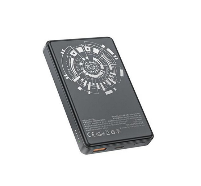 Awei P33K vésztöltő USB+Type-C aljzat (10000mAh, 22.5W, wireless, MagSafe, PD gyorstöltő) FEKETE