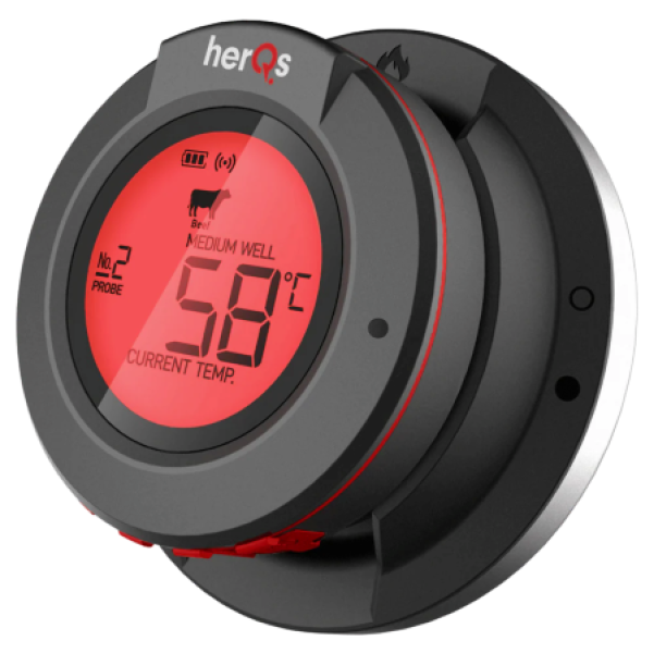 A herQs Dome BBQ hőmérő segítségével többé nem kell találgatnod grillezés közben: valós idejű, precíz hőmérséklet‑követést kapsz, akár 60 méteres Bluetooth‑hatótávval, okostelefonos alkalmazással és több szonda egyidejű használatának lehetőségével. Ez az okos BBQ‑hőmérő minden grillmestert magabiztossá tesz — legyen szó szaftos steakről, lassú sütésről vagy komoly BBQ-projektről.