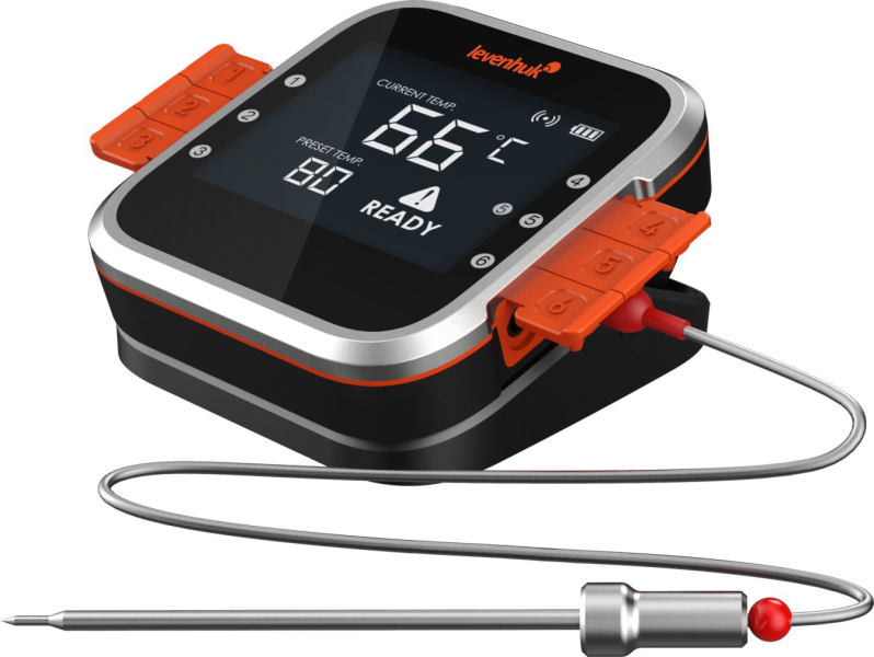 A Levenhuk Wezzer Grill BT20 Bluetooth hús- és grillhőmérő ideális választás mindazok számára, akik pontosan szeretnék ellenőrizni az ételek hőmérsékletét grillezés, sütés vagy füstölés közben. A készülék segítségével könnyedén elérhető a tökéletes átsütöttség, miközben a sütési folyamat okostelefonról is nyomon követhető.