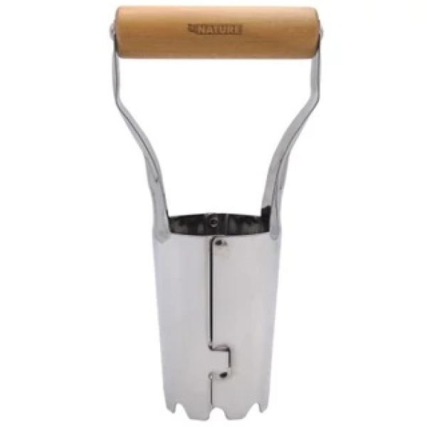 • Hagymaültető kézi szerszám 6 cm átmérővel, 410-es rozsdamentes acélból, FSC tanúsítványú fa nyéllel.