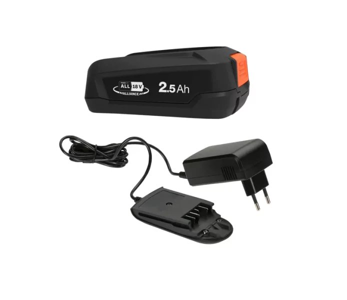 Az összes 18 V POWER FOR ALL termék működtethető a 2,5 Ah-s PBA 18V/45 akkumulátorral, és egyszerűen feltölthető a GARDENA AL 18V-20 töltővel. Ezek megtalálhatók ebben a kezdőkészletben. A 2,5 Ah-s akkumulátor 79 percen belül teljesen feltöltődik. A töltőn lévő LED kijelző jelzi, ha az akkumulátor éppen töltődik, vagy teljesen fel van töltve, és használható a különböző POWER FOR ALL eszközök egyikében. Ez a kezdőkészlet a POWER FOR ALL Alliance terméke, amely a vezető gyártók egyik legnagyobb márkák közötti akkumulátorszövetsége. Az akkumulátor a POWER FOR ALL Alliance több mint 100 termékében használható otthon és a kertben. Ezentúl nem kell minden termékhez külön töltőt és akkumulátort vásárolni, így költséghatékony és rugalmas megoldás!