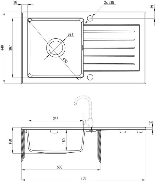• A 15 cm mély medence elegendő helyet biztosít még a terjedelmes edények és serpenyők kényelmes mosásához is.