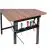 Ez a gyorsan szétszerelhető és könnyen hordozható asztal felhasználható segédmunkákhoz építkezéseken, műhelyekben vagy otthonokban, valamint különféle tevékenységekhez a kertben, kempingezéskor stb. A két oldalsó támasz rögzíti az asztalt széthajtott állapotban, megakadályozva ezzel a szerkezet nem kívánt mozgását és összecsukódását. A kiegészítő rúddal növelhető a szerkezet stabilitása, azonban az asztal anélkül is használható. A finom dekorú furnérral borított asztallap MDF-ből készült, a fém fogantyú az asztal szerkezetének része.