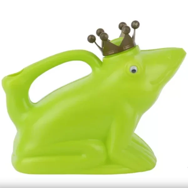 Vidám, békakirály formájú műanyag öntözőkanna, amely praktikus és dekoratív eszköz a növények locsolásához. Könnyen kezelhető, és színes megjelenésével feldobja a kertet vagy teraszt, miközben egyszerűen öntözi a növényeket.