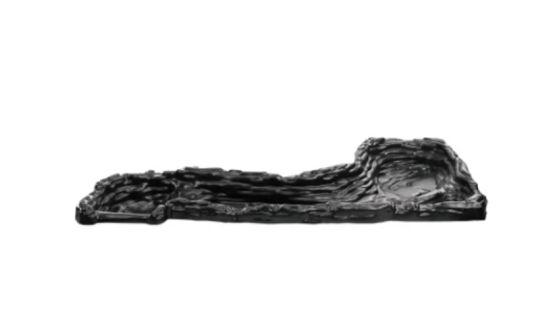 Kerti tavakhoz és vízjátékokhoz készült nagyméretű fekete vízeséselem, amely széles és szabályozott vízlefolyást biztosít, stabil beépítéssel és látványos vízképpel; méret: 168 × 81 × 13,5 cm.