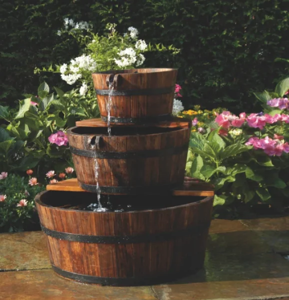 Az Ubbink Acqua Arte szett Edinburgh látványos, rusztikus kerti csobogó, amely három különböző méretű fahordóval teremti meg a víz természetes mozgását. Ideális kertekbe, teraszokra és pihenőzónákba.