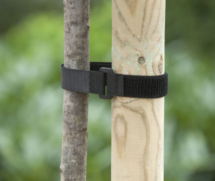 Csatos fatörzsrögzítő 40×2,5 cm, 2 db/csomag. Segít a fiatal fák stabil megtámasztásában, UV-álló és rugalmas anyagból készült. Ideális karózáshoz és törzsvédelemhez.