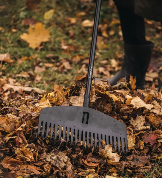 • Ívelt, rugalmas fogak csökkentik a levél‑ és hulladékfelhalmozódást a gereblyézés során