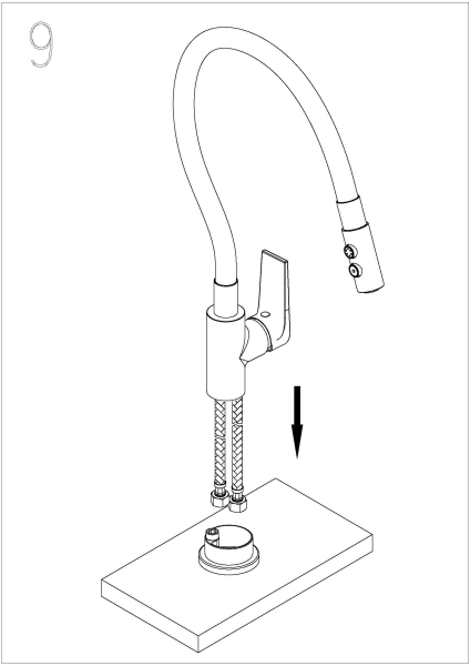 • Fekete, flexibilis kifolyócsöves mosogató csaptelep